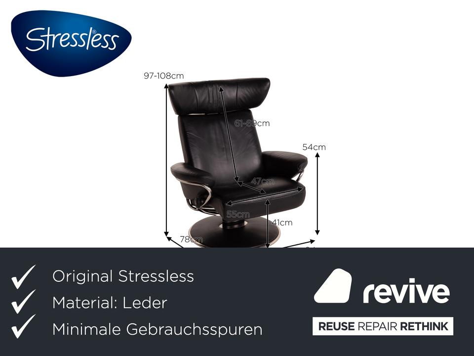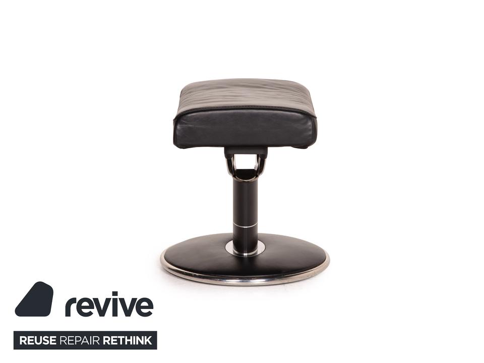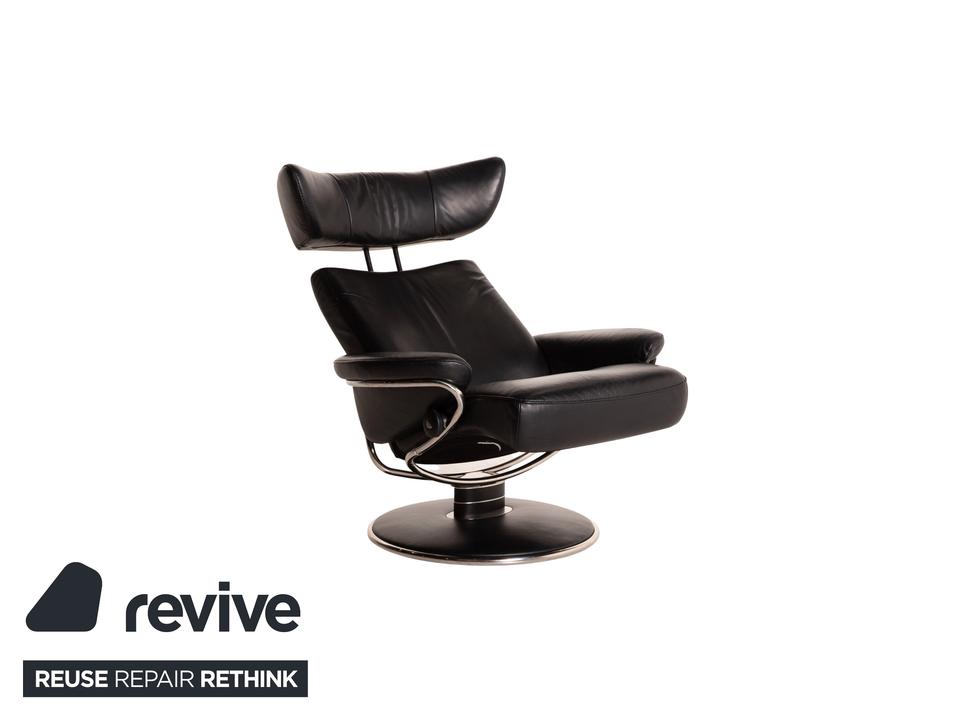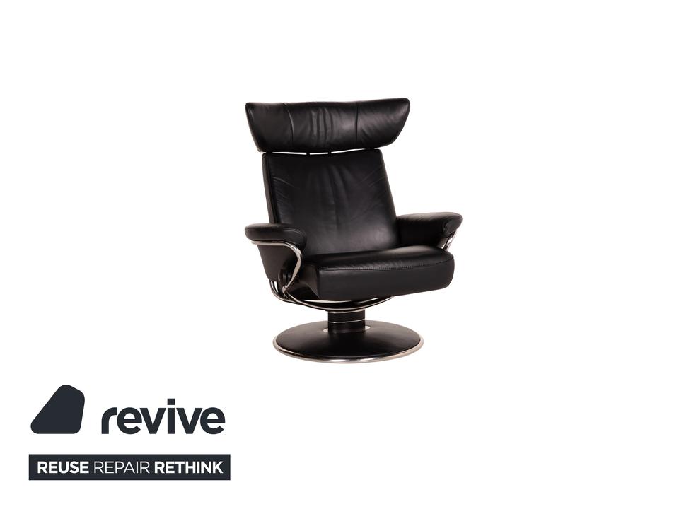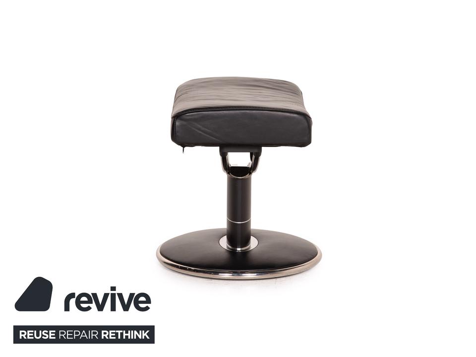 Das Sesselset Jazz (Größe M) ist mit einem schwarzen Echtleder bezogen und steht auf einem Gestell aus Leder und Chrom. Weiche Polster und eine Relaxfunktion sorgen für Entspannung. Die Kopfstütze des Sessels kann nach oben verstellt werden.Der Sessel eignet sich optimal für Menschen mit einer Körpergröße von bis zu 1,80m.