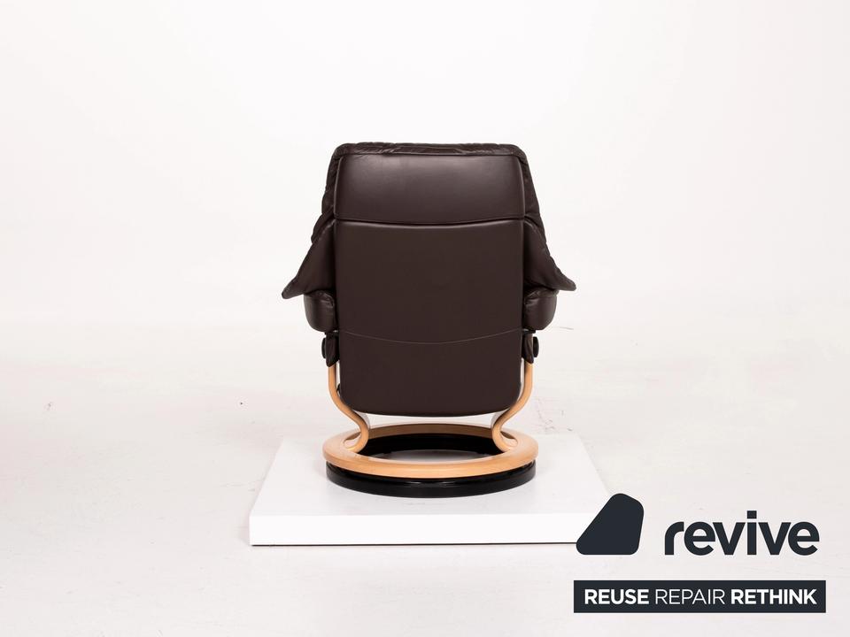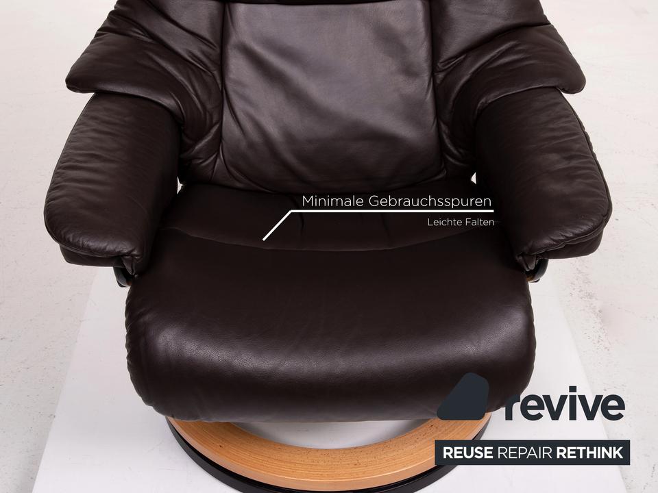 Der Stressless Sessel Reno der Größe M ist mit einem dunkelbraunen Echtleder bezogen und bietet höchsten Komfort, um seinem Namen alle Ehre zu machen. Die Relax-Funktion lädt zum Entspannen ein. Der passende Hocker bietet die Möglichkeit die Füße hochzulegen.Der Sessel eignet sich optimal für Menschen mit einer Körpergröße von bis zu 1,80m.