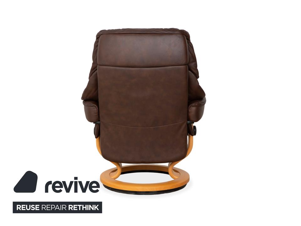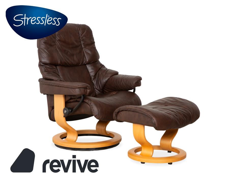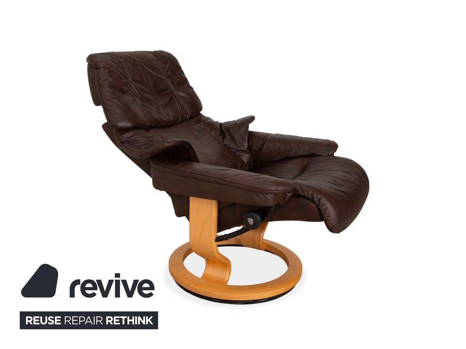 Der Stressless Reno gilt als einer der beliebtesten Möbel der norwegischen Marke. Mit seiner ikonischen, üppig gepolsterten Form und der weichen Knautschoptik lädt dieser Sessel sofort zum Hineinsinken ein. Das hochwertige Leder in sattem Braun strahlt eine wohnliche Ruhe aus. Das geschwungene helle Holzgestell bildet dazu einen edlen Kontrast und sorgt für zeitlose Eleganz in deinem Wohnzimmer.Das Herzstück dieses Sessels ist seine geniale Funktionalität. Dank des Gleitsystems passt sich die Sitzposition ganz intuitiv und stufenlos der natürlichen Bewegungen an: allein durch die Verlagerung deines Körpergewichts, ganz ohne störende Hebel. Zusammen mit dem passenden Hocker, auf dem man die Beine entspannt ablegen kann, so genießt man ein ergonomisches Sitzerlebnis der Extraklasse.