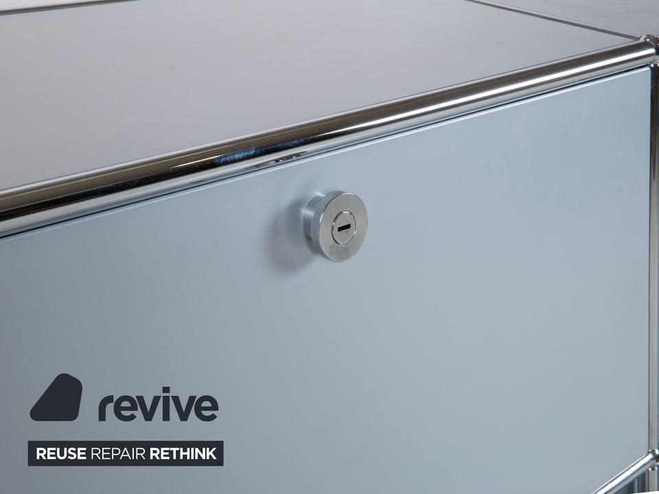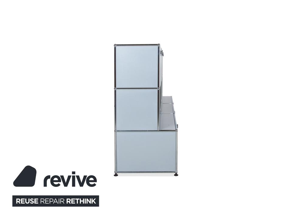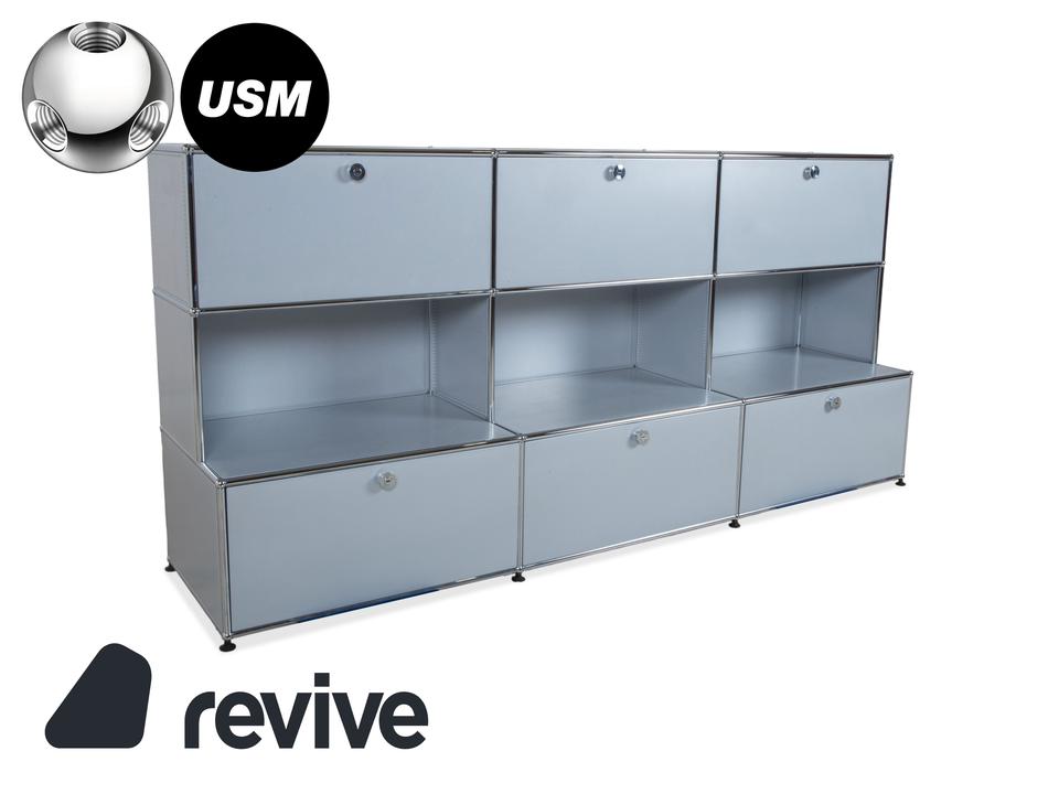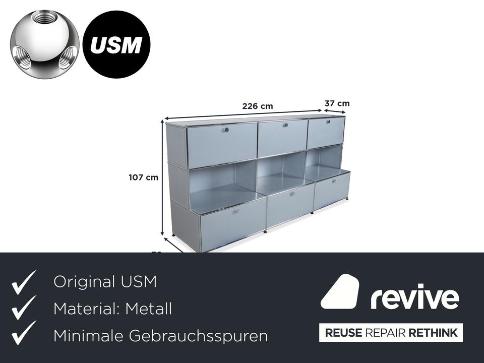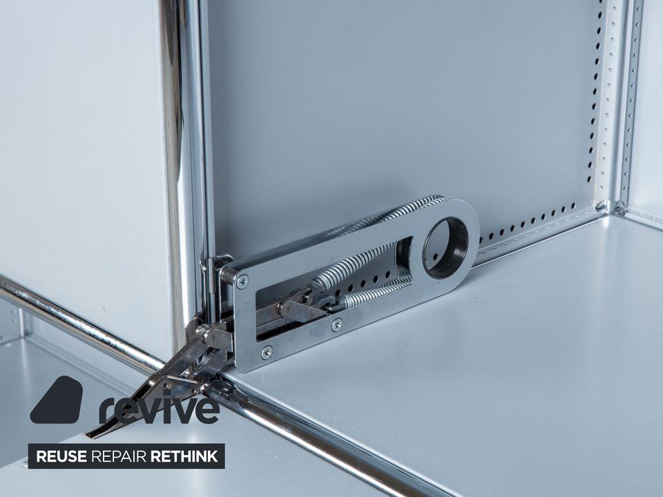 Dieses USM Haller Sideboard ist die Verkörperung von modularer Perfektion und industrieller Eleganz. In der klassischen Farbausführung Lichtgrau fügt es sich nahtlos in moderne Bürolandschaften oder minimalistische Wohnbereiche ein. Das System von Fritz Haller und Paul Schärer ist weltweit ein Symbol für Ordnung, Qualität und Flexibilität.Dank der charakteristischen Konstruktion aus verchromten Stahlrohren und den markanten USM-Kugeln bleibt dieses Möbelstück über Jahrzehnte hinweg stabil und wertbeständig.