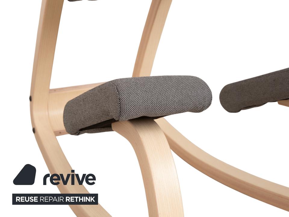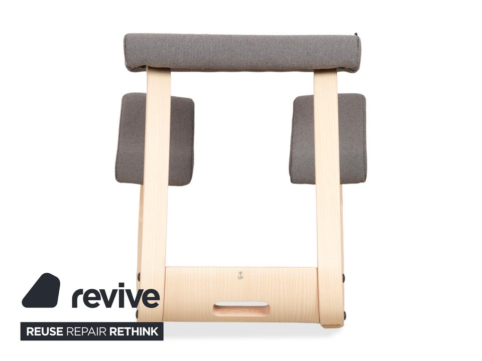 Mit dem „Variable“ von Varier (ehemals Stokke) holst du dir den absoluten Klassiker des ergonomischen Sitzens in dein Zuhause. Dieser Kniestuhl ist eine Ikone des skandinavischen Designs und wurde entworfen, um Bewegung und gesundes Sitzen zu fördern.Die Kombination der Materialien wirkt hier besonders frisch und freundlich: Das Gestell besteht aus hellem Eschenholz in Natur, dessen sanfte Maserung schön sichtbar ist und Wärme ausstrahlt. Kontrastiert wird das helle Holz von Polstern in einem dunklen Grau (Revive 164). Das geniale Konstruktionsprinzip mit den gebogenen Kufen erlaubt sanfte Schaukelbewegungen, während die Schienbeinpolster verhindern, dass du nach vorne rutschst. Durch den offenen Sitzwinkel richtet sich deine Wirbelsäule fast automatisch auf, was den Rücken entlastet und die Atmung vertieft. Ein Möbelstück, das nicht nur gut aussieht, sondern dir aktiv guttut.