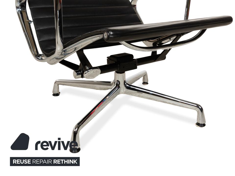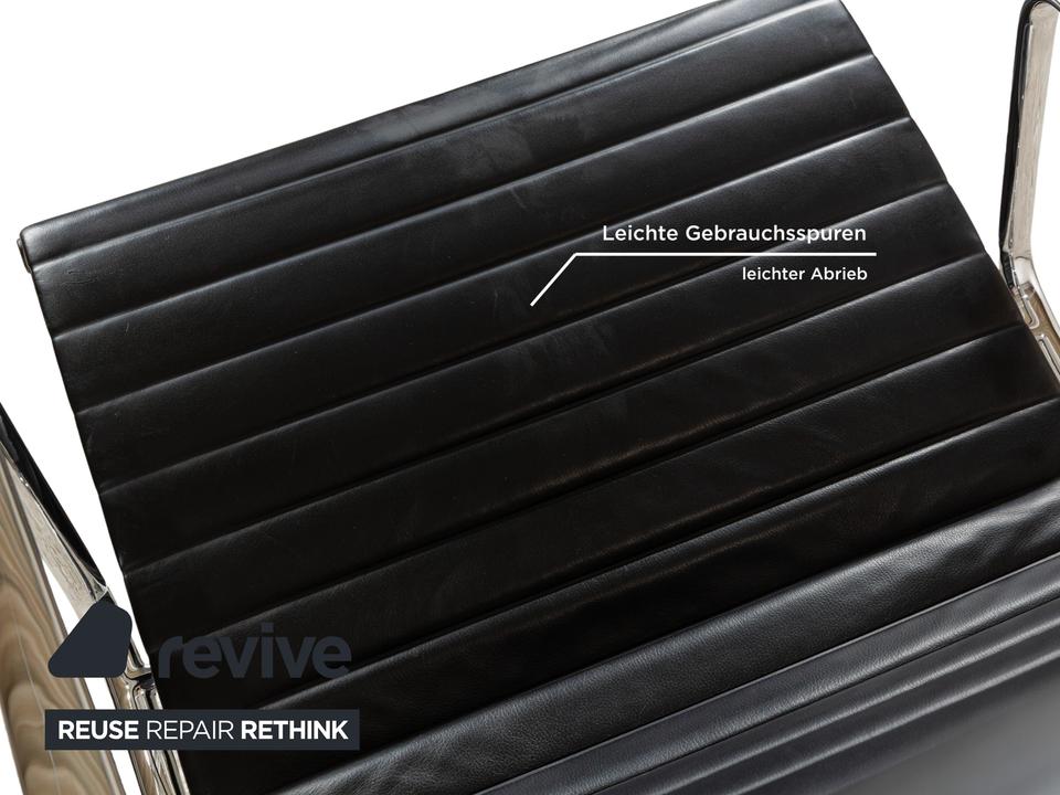Der Vitra EA 124 aus hochwertigem Leder sieht nicht nur bequem aus, sondern bringt auch einen ergonomischen Faktor mit sich. Zudem verfügt er über eine Wippfunktion, die den Komfort nochmal erhöht.