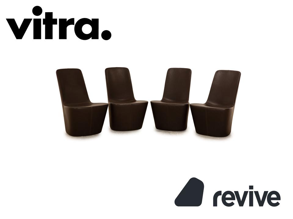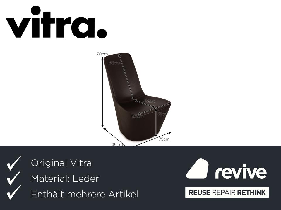 Die Monopod Sessel Garnitur von Vitra ist mit einem dunkelbraunen Echtleder bezogen und ist bodentief. Das minimalistische, schlichte Design zeichnet sie aus. Die Garnitur besteht aus vier Sesseln.
