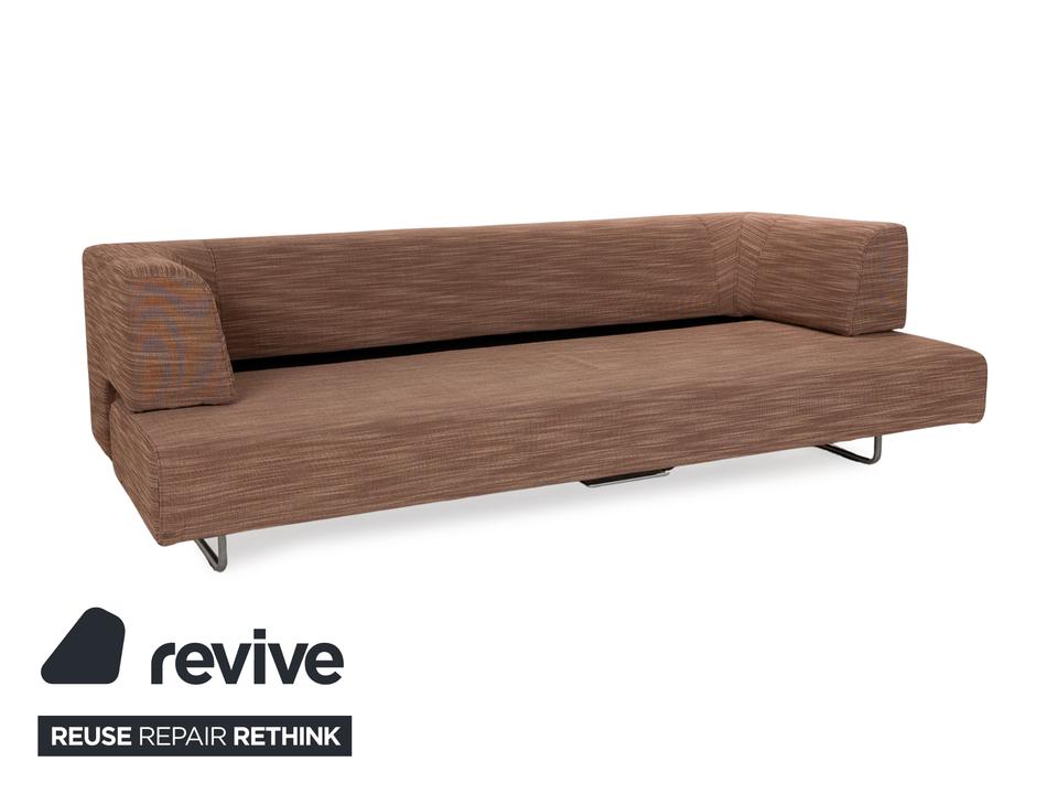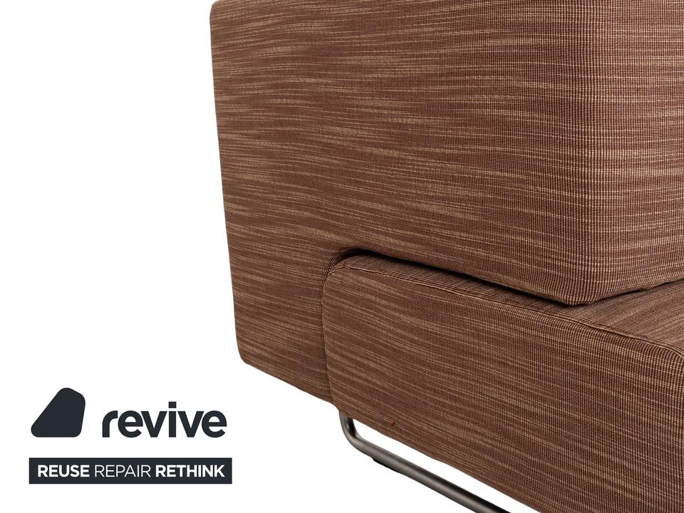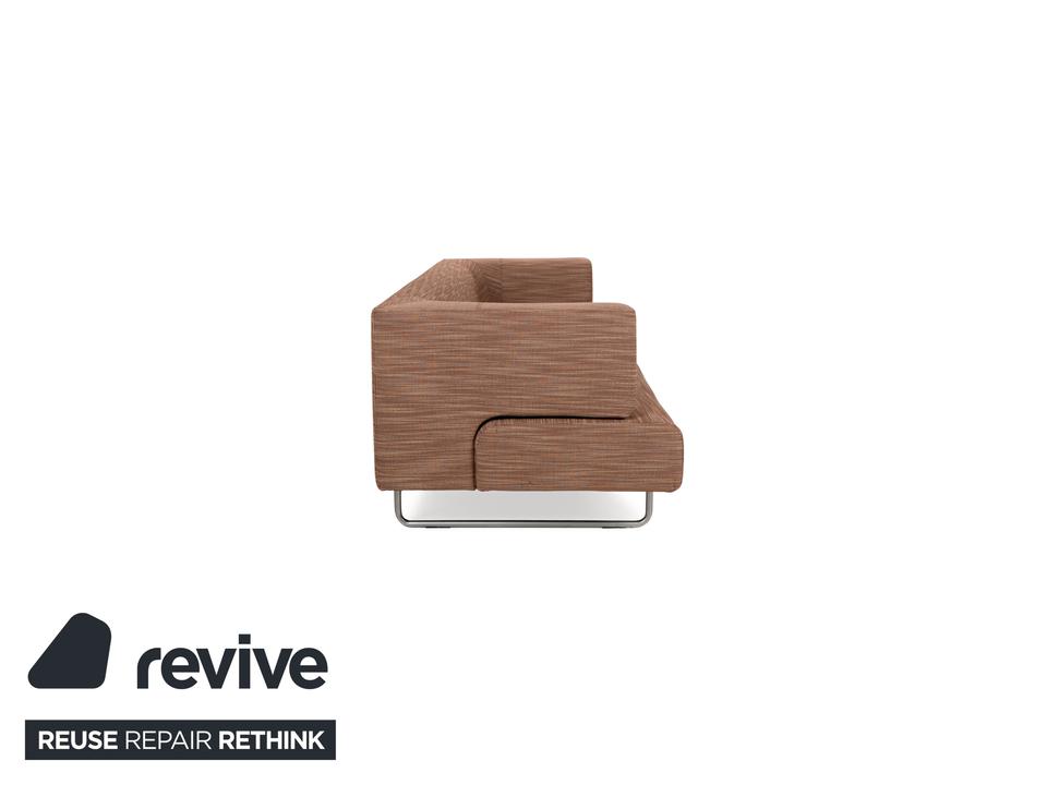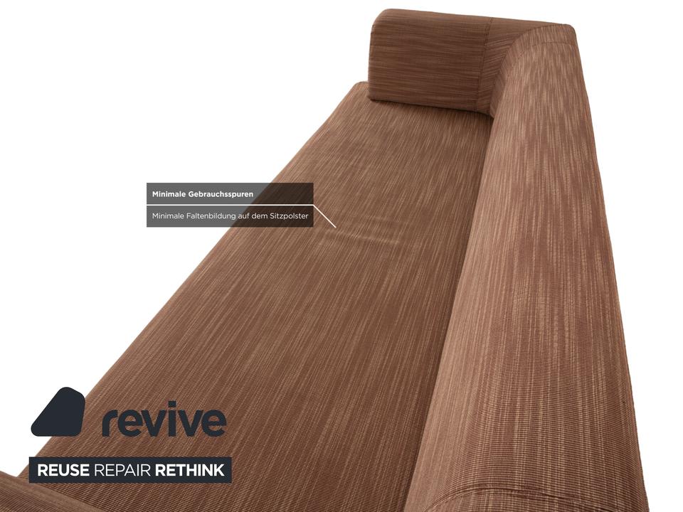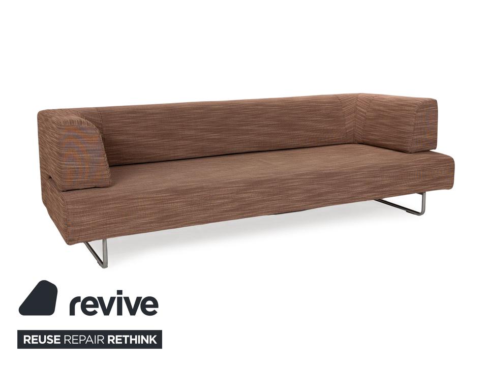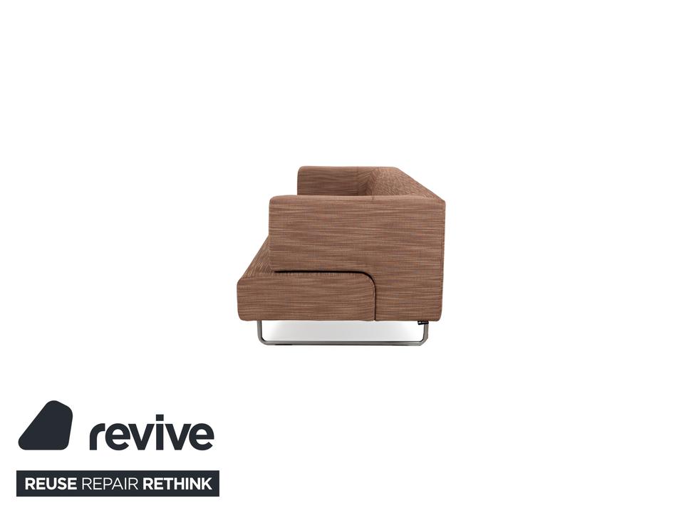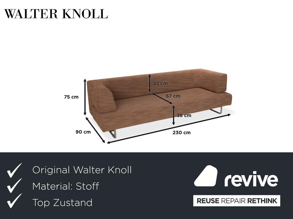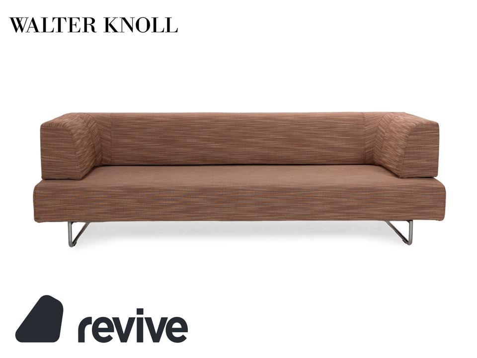 Der Dreisitzer Easy 480 von Walter Knoll besteht aus einem braunen Stoff und steht auf schmalen Füßen. Er zeichnet sich durch das minimalistische Design und die gradlinige Optik aus. Die Sitzfläche lässt sich nach vorne hin ausziehen, sodass sie mehr Sitztiefe bietet.