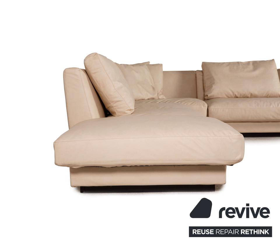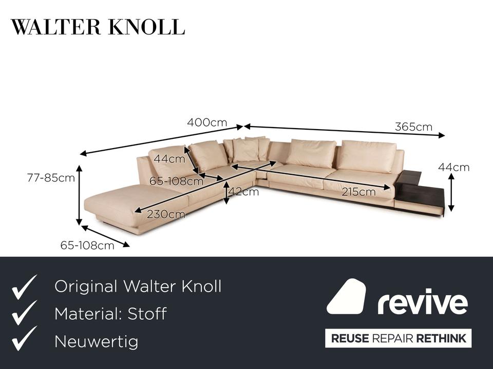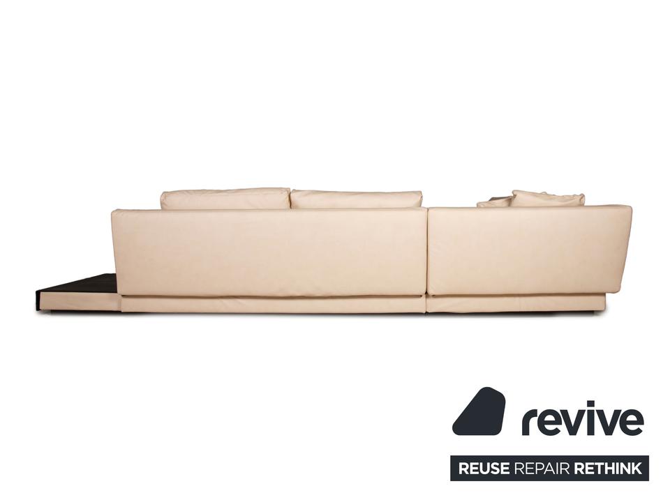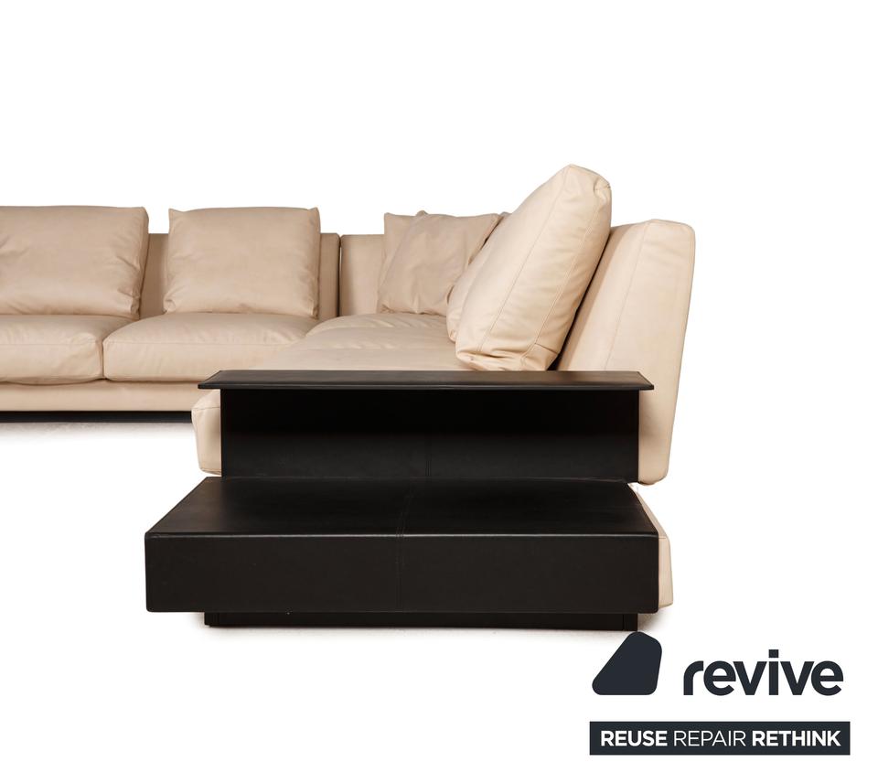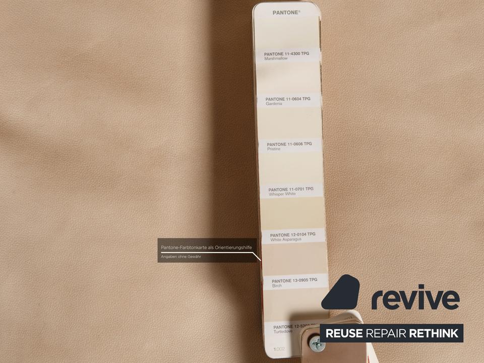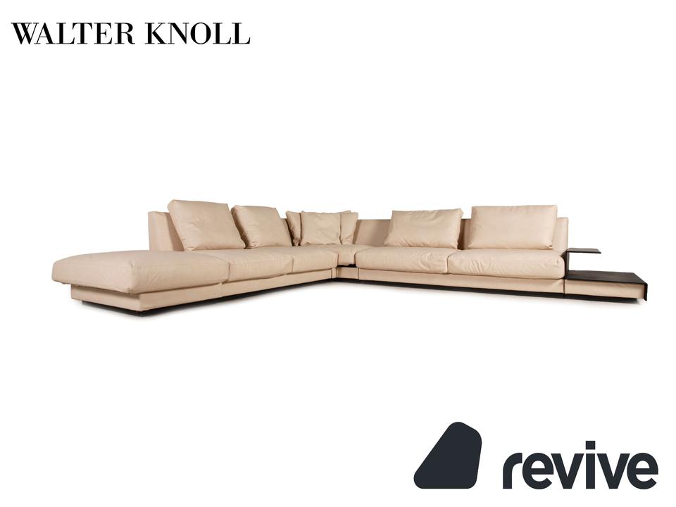 Das Grand Suite Sofa von Walter Knoll ist mit einem cremefarbenen veganen Leder (GAVIN von Höpke) neu bezogen. Das zeitlose Design und die praktische Holzablage zeichnen das Ecksofa aus.