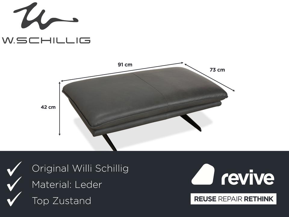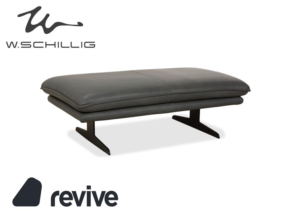 Willi Schillig Broadway Hocker: Die schwebende Relax-InselDieser Hocker ist das fehlende Puzzleteil zur Vollendung deiner Broadway-Lounge. Er greift die Designsprache des Sofas eins zu eins auf und überzeugt durch dieselbe moderne Leichtigkeit.Der Bezug aus hochwertigem Leder in Anthrazit (Dunkelgrau) wirkt edel und zeitlos. Besonders auffällig ist die Polsterung: Die Sitzfläche ist wie ein separates, weiches Kissen gestaltet, das auf dem Korpus aufliegt und sofort Gemütlichkeit signalisiert. Getragen wird das Möbelstück von den charakteristischen schwarzen Metallkufen: Sie heben den großen Hocker vom Boden ab und lassen ihn – genau wie das Sofa – optisch schweben.Dank seiner großzügigen, rechteckigen Form ist er extrem vielseitig. Schiebe ihn an das Sofa, um eine riesige Liegewiese zu kreieren, oder nutze ihn frei im Raum als zusätzliche Sitzgelegenheit für Gäste.