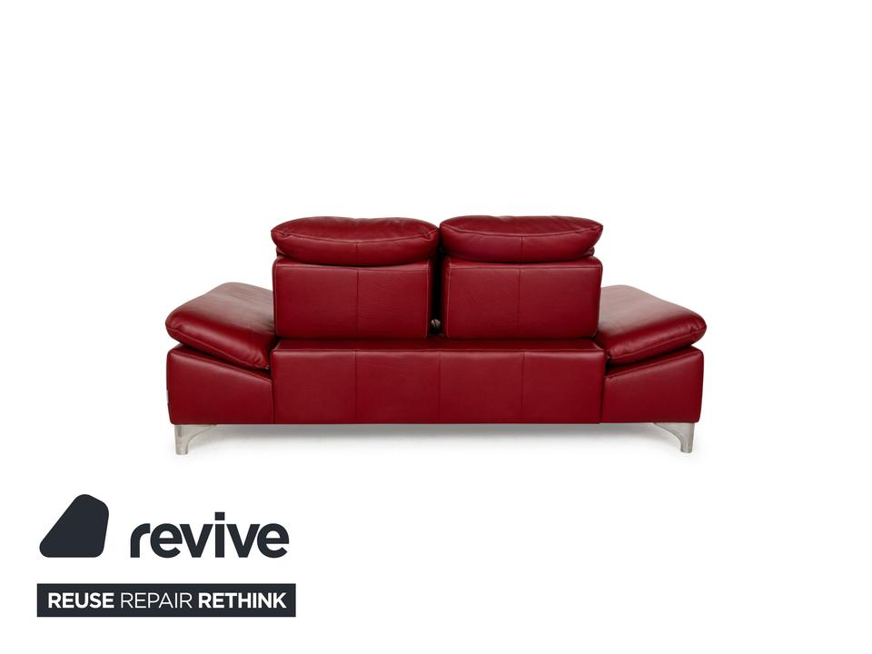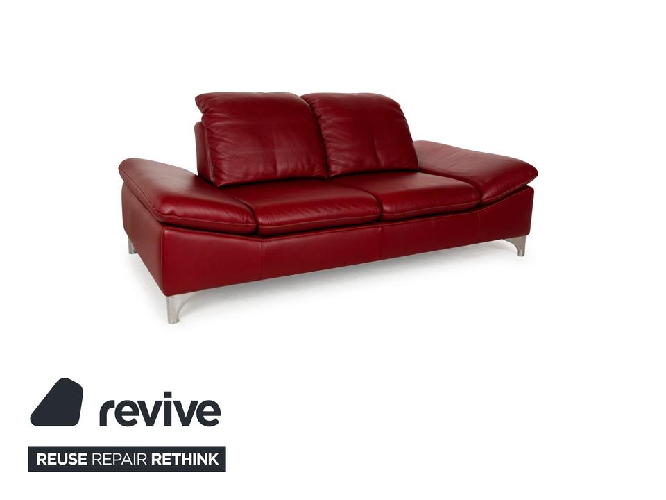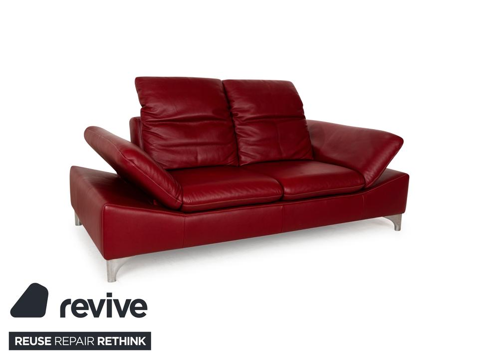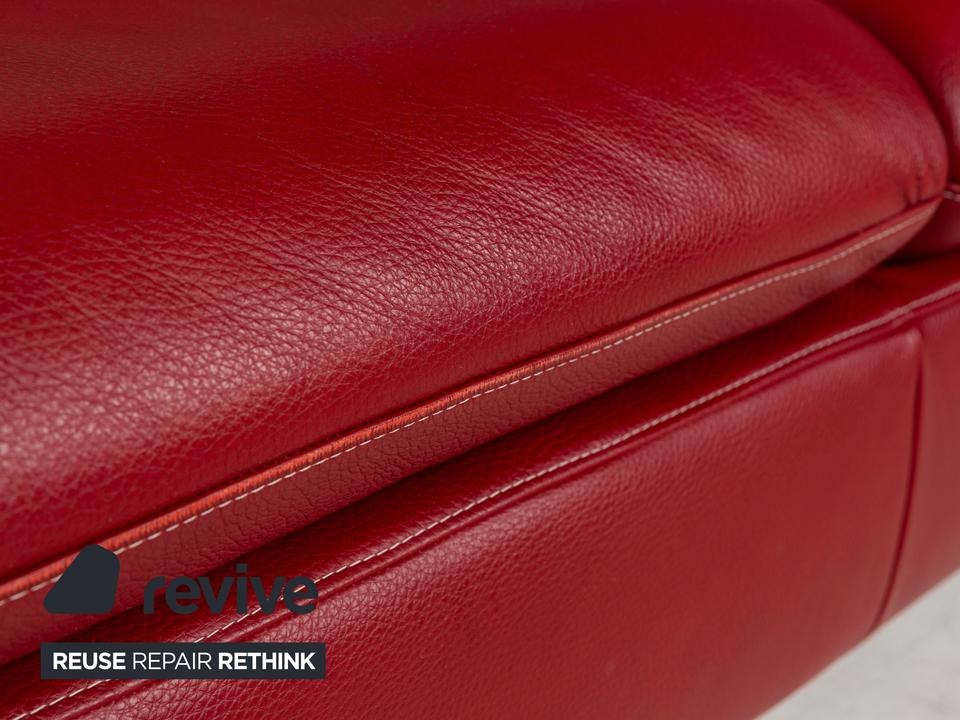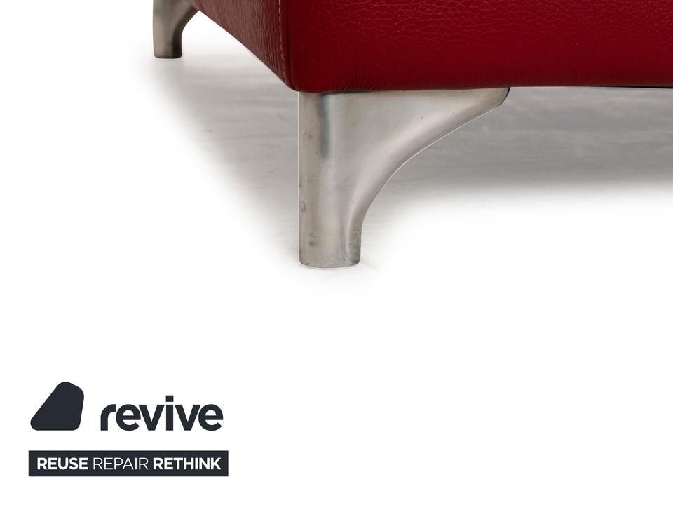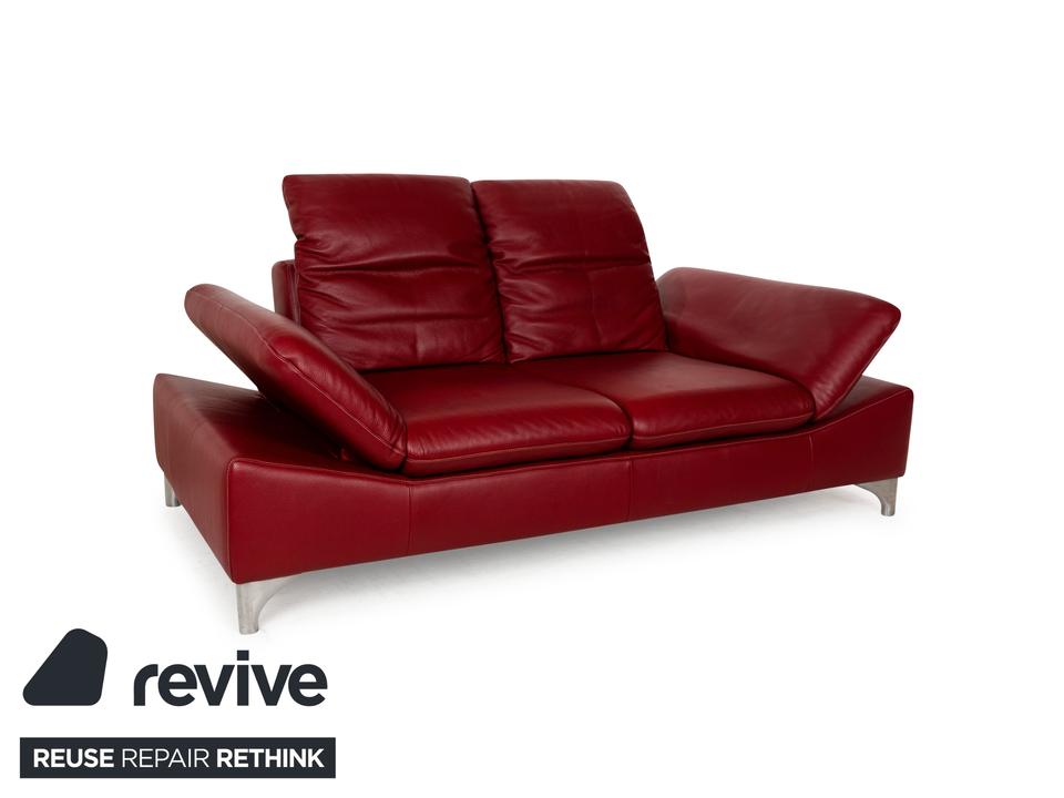 Das Sofa Enjoy von Willi Schillig ist mit einem intensiv roten Leder bezogen und steht auf winkligen Metallfüßen. Der Zweisitzer zeichnet sich durch seine vielen Verstellbarkeiten aus: Die Armlehnen und Rückenlehnen lassen sich in der Höhe variieren und die Sitzfläche ist zudem in der Tiefe erweiterbar. So wird hoher Komfort garantiert.