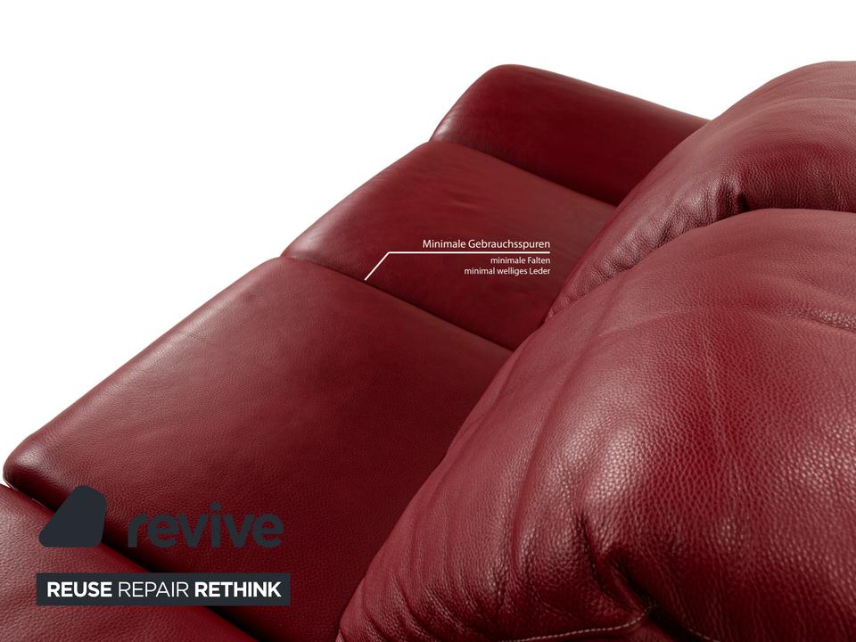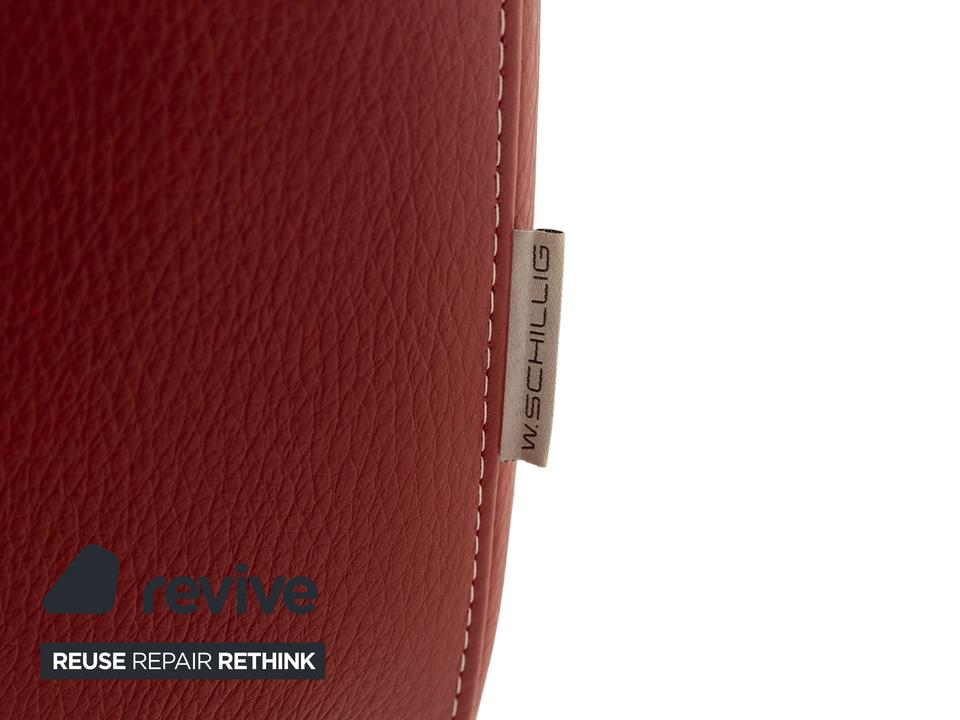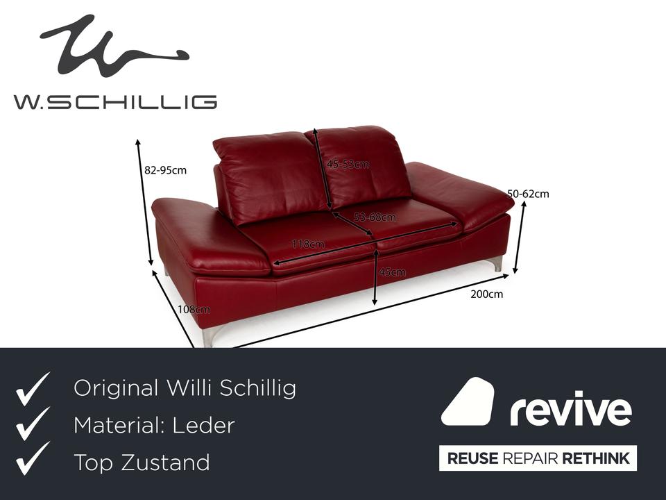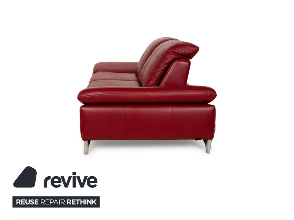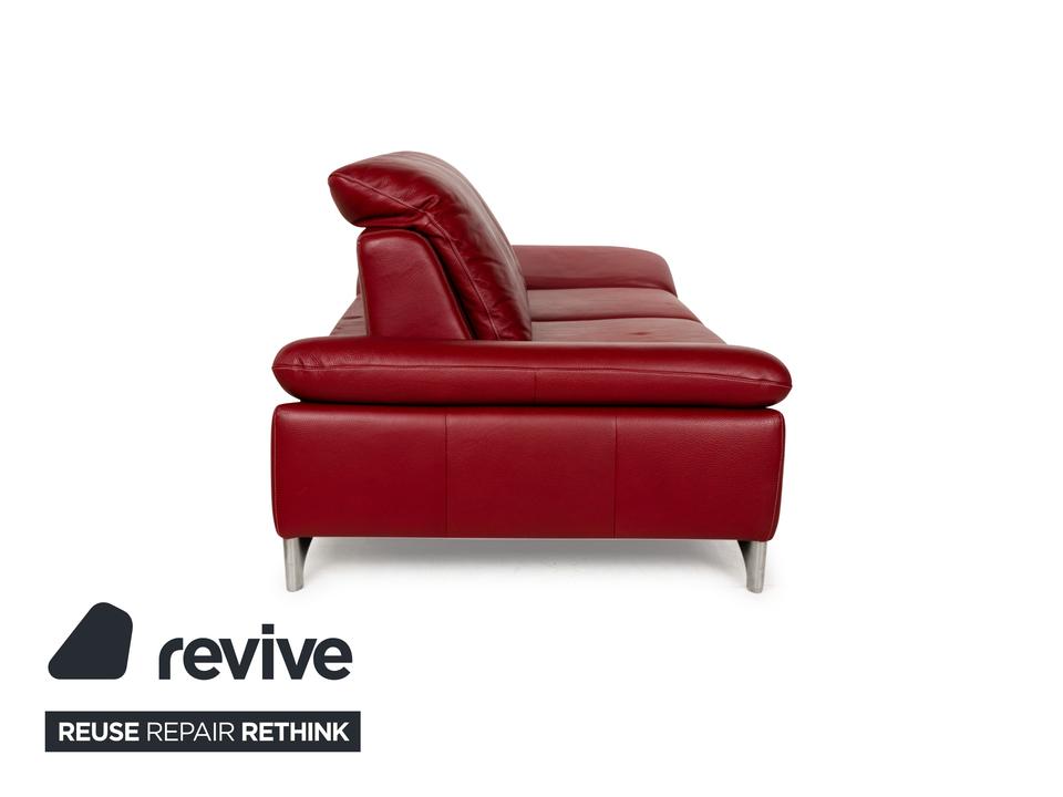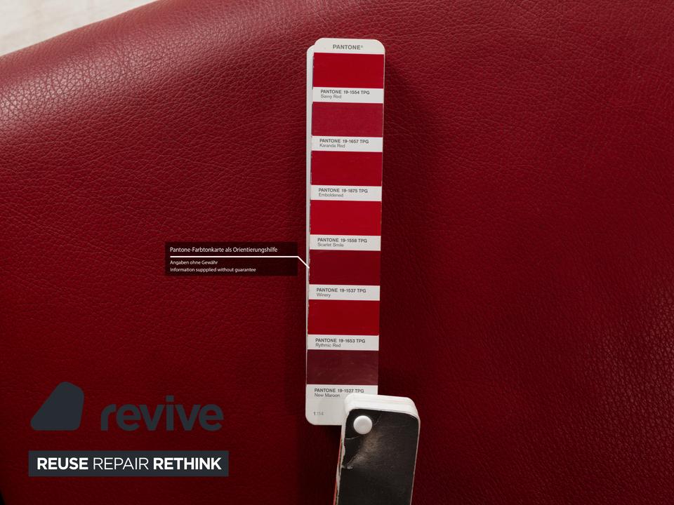 Das Sofa Enjoy von Willi Schillig ist mit einem intensiv roten Leder bezogen und steht auf winkligen Metallfüßen. Der Zweisitzer zeichnet sich durch seine vielen Verstellbarkeiten aus: Die Armlehnen und Rückenlehnen lassen sich in der Höhe variieren und die Sitzfläche ist zudem in der Tiefe erweiterbar. So wird hoher Komfort garantiert.