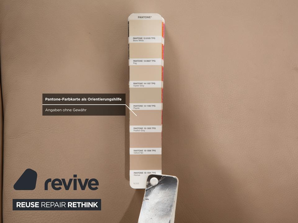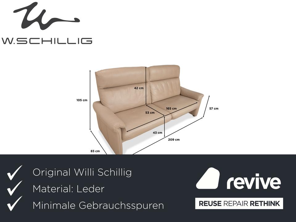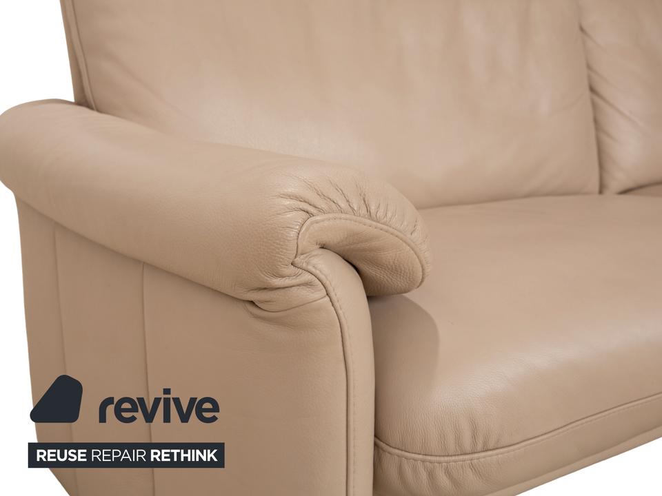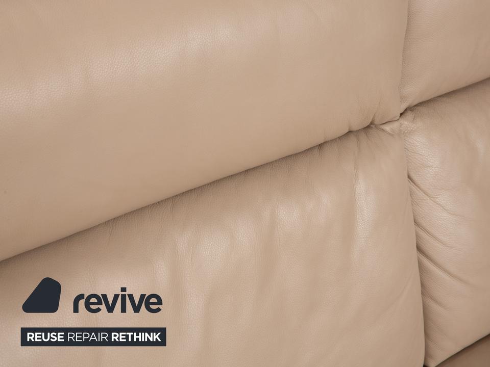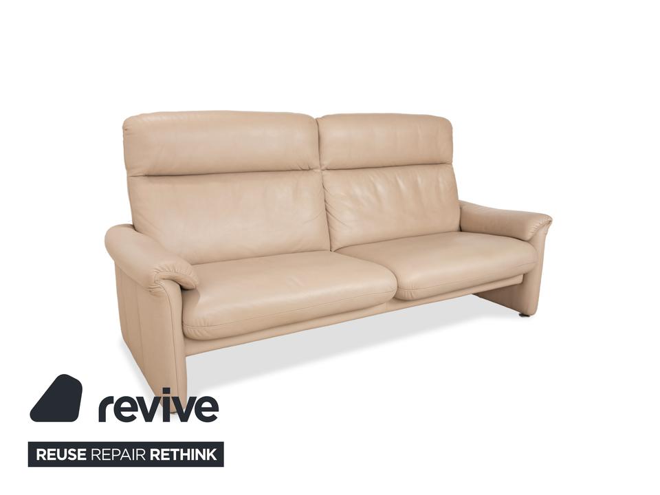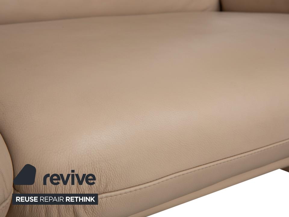 Das Sofa Ergoline Dreisitzer Sofa von Willi Schillig ist mit beigem Leder bezogen und steht auf bodentiefen Seitenteilen. Der Dreisitzer zeichnet sich duch sein klassisches Design und hohen Komfort aus – verstellbare Kopfstützen und Rückenlehnen erlauben verschiedene Sitzpositionen.