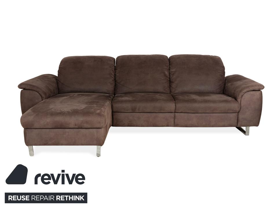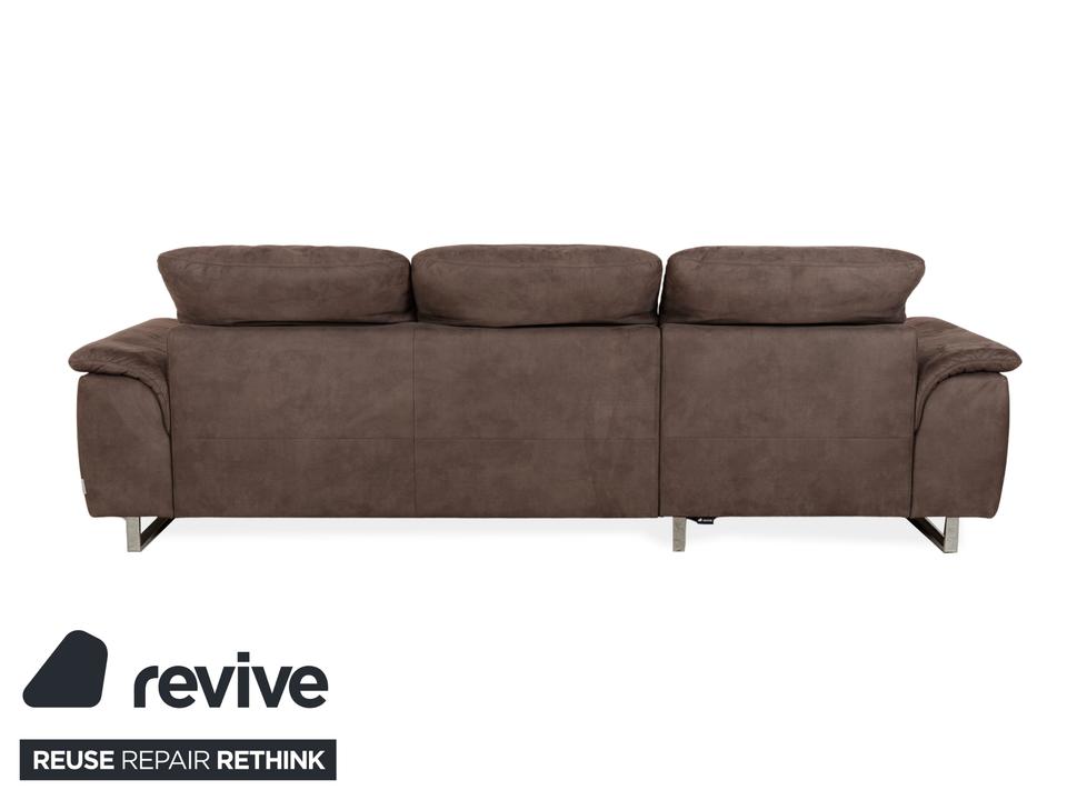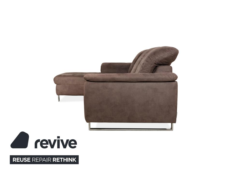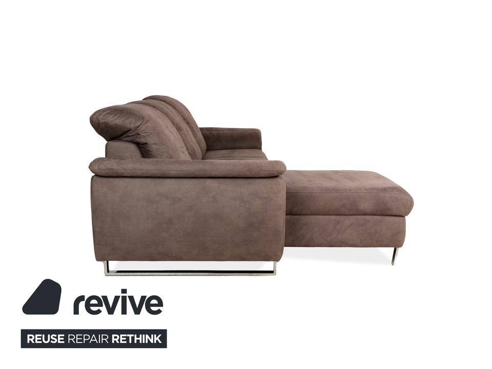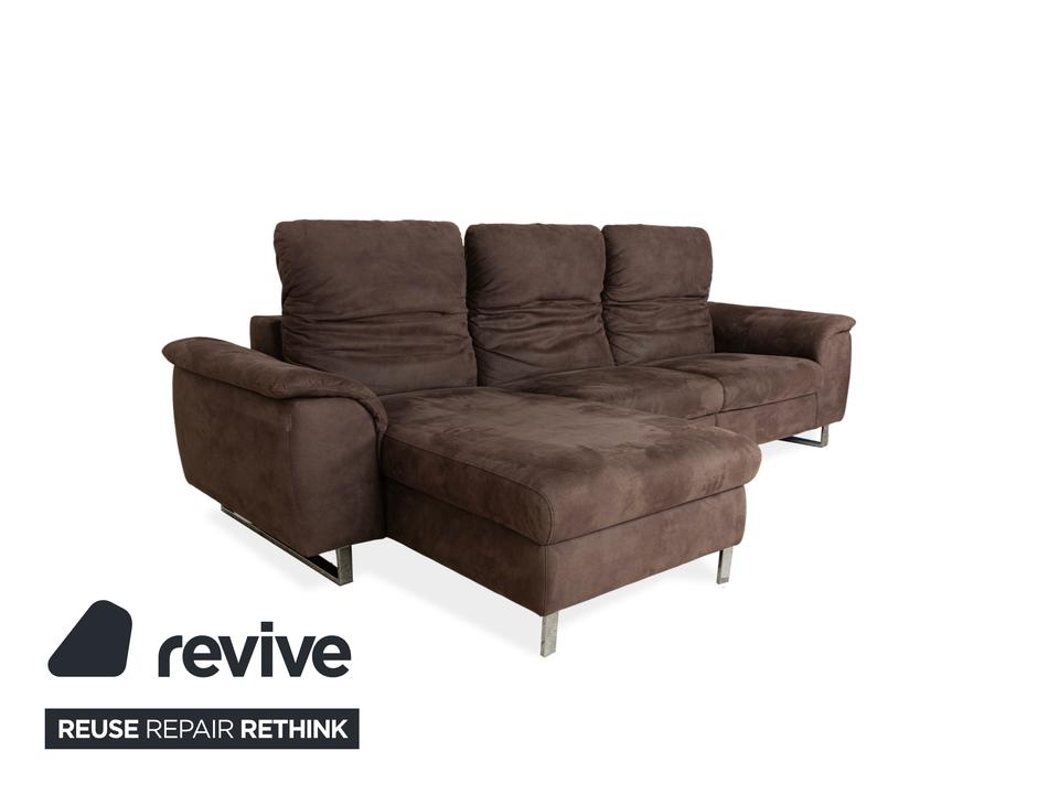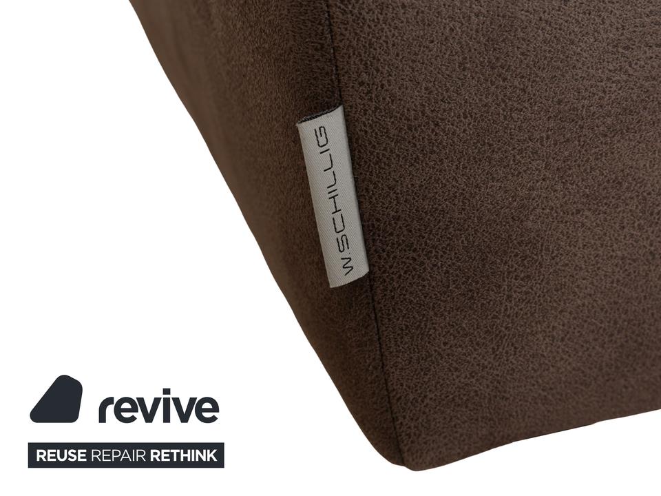 Das Ecksofa von Willi Schillig ist ein echtes Wohlfühlmöbel für alle, die es bequem mögen. Der Stoffbezug in warmem Braun sorgt für eine wohnliche Atmosphäre, während die breiten Armlehnen und die modernen Chromfüße für einen zeitlosen Look sorgen. Die linksseitige Recamiere bietet zusätzlichen Platz zum Füßehochlegen.