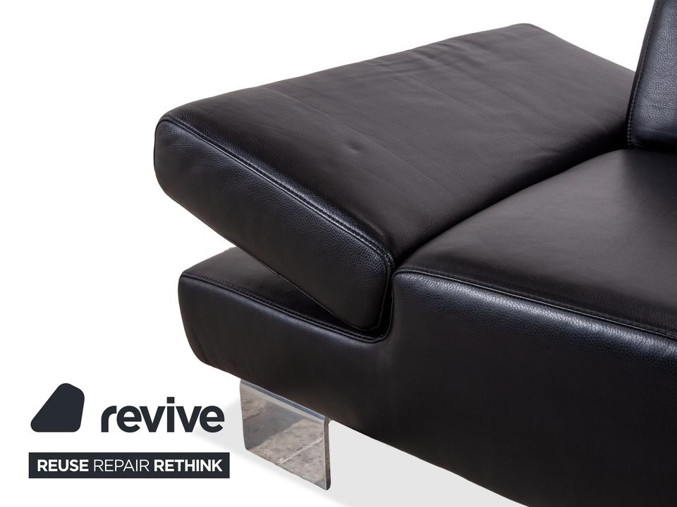 Das Taboo von Willi Schillig ist ein echtes Design-Statement für Liebhaber klarer Linien und moderner Ästhetik. In tiefschwarzem Leder gefertigt, strahlt es eine zeitlose Eleganz aus und wirkt durch die bodenfreie Konstruktion auf markanten Metallkufen besonders leicht und luftig.Manuelle Seitenteil-Verstellung: Die Armlehnen lassen sich mehrstufig nach oben klappen oder flach abwinkeln. So verwandelt sich das Sofa im Handumdrehen von einer repräsentativen Sitzgelegenheit in eine gemütliche Liegefläche für das Power-Napping.Markante Metallkufen: Die breiten, verchromten Füße unterstreichen den modernen Look und bieten einen stabilen Kontrast zum schwarzen Leder.