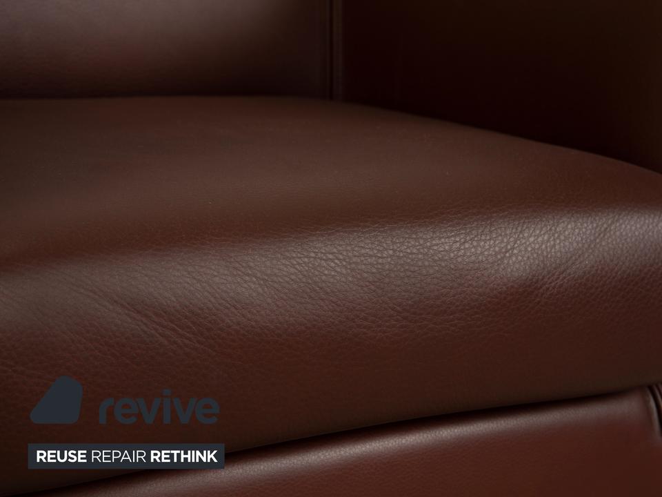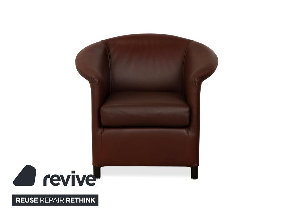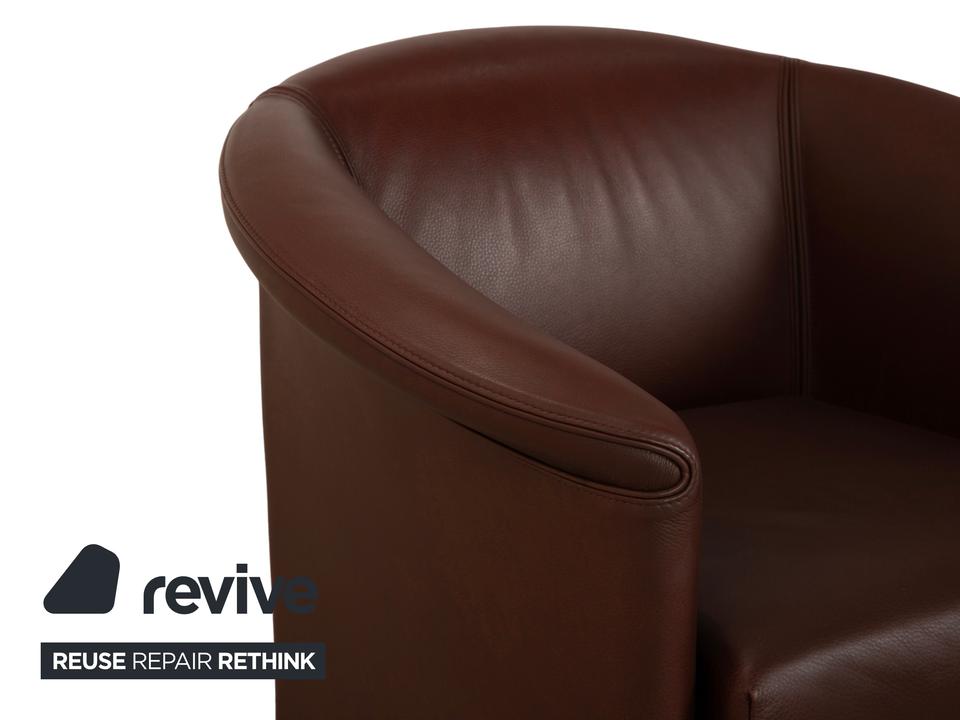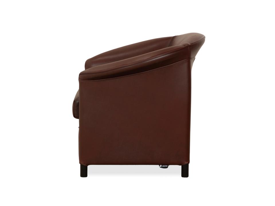Der Wittmann Aura XL ist der Beweis, dass ein kompakter Sessel nicht ungemütlich sein muss. Ganz im Gegenteil: Durch die halbrunde Form, bei der die Rückenlehne fließend in die Armlehnen übergeht, fühlst du dich hier richtig „umarmt“. Das Leder in einem tiefen Braunton mit leicht rötlichem Einschlag wirkt sehr edel und warm, was dem Sessel eine gewisse Schwere nimmt.Obwohl er optisch eher an einen klassischen Cocktailsessel erinnert, bietet die „XL“-Variante spürbar mehr Platz und Sitzkomfort. Er steht auf schlichten, schwarzen Füßen, die den Fokus voll auf den lederbezogenen Korpus lenken. Ein ideales Möbelstück für die Leseecke oder als stilvolle Ergänzung zum Sofa, wenn du nicht viel Stellfläche verbrauchen, aber trotzdem bequem sitzen willst.