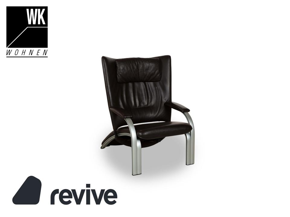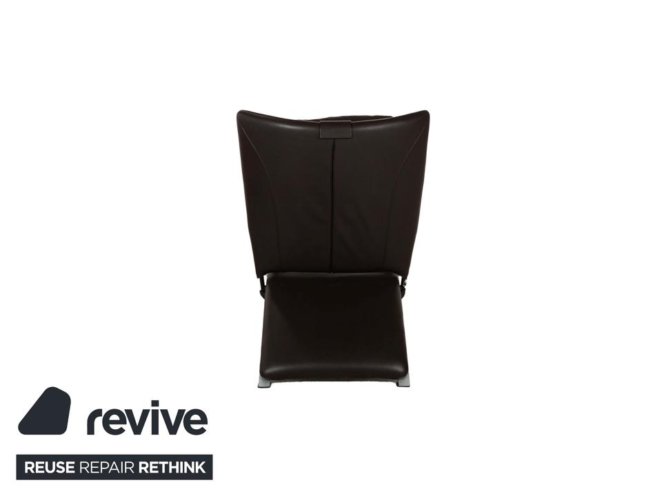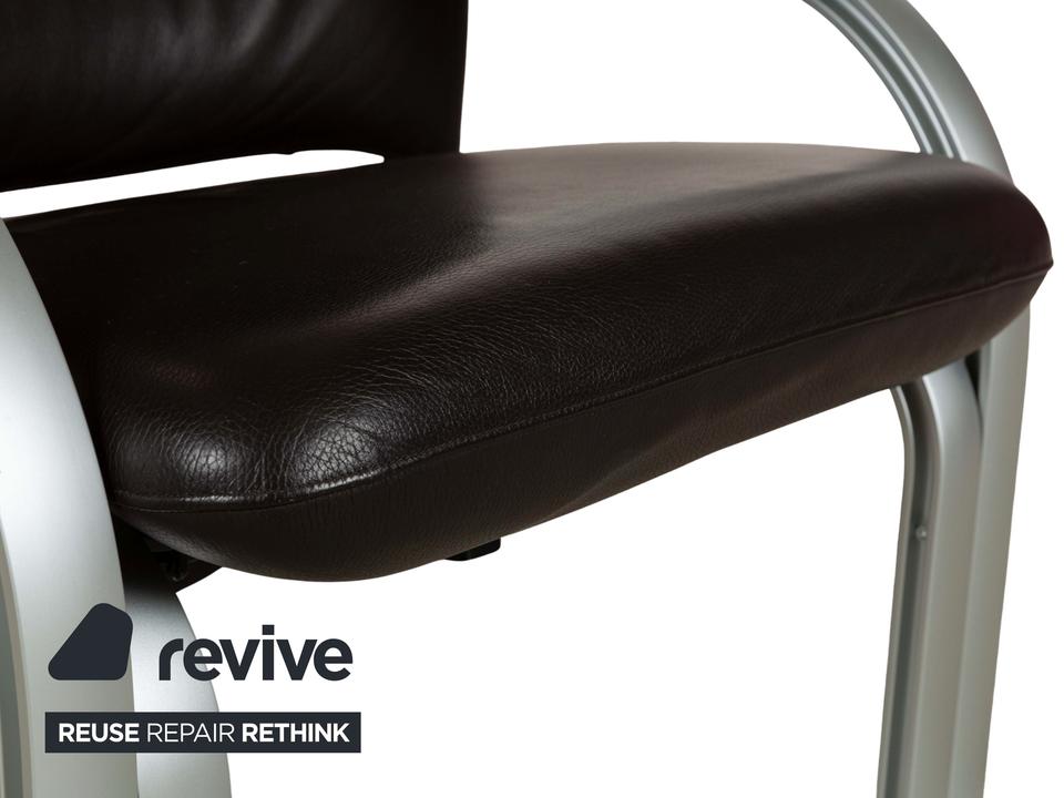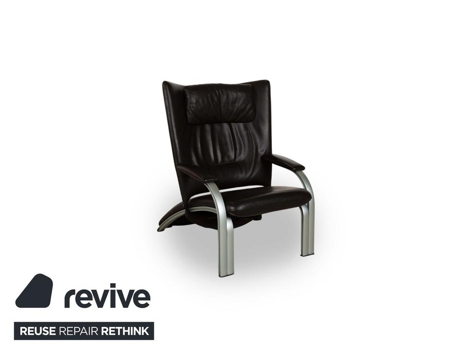 Dieser markante Sessel vereint modernes Design mit optimalem Sitzkomfort. Der Bezug aus dunkelbraunem Leder verleiht ihm eine luxuriöse Ausstrahlung, während die gepolsterte Rückenlehne mit integrierter Kopfstütze eine ergonomische Sitzhaltung unterstützt. Die geschwungenen Armlehnen und das stabile Gestell aus gebürstetem Metall sorgen für einen stilvollen Kontrast und hohe Langlebigkeit. Perfekt für Wohnbereiche, Büros oder Lounges, bietet dieser Sessel eine ideale Kombination aus Eleganz und Funktionalität.