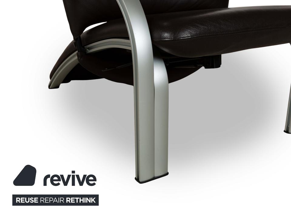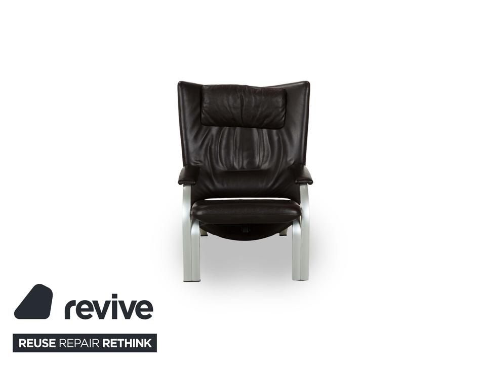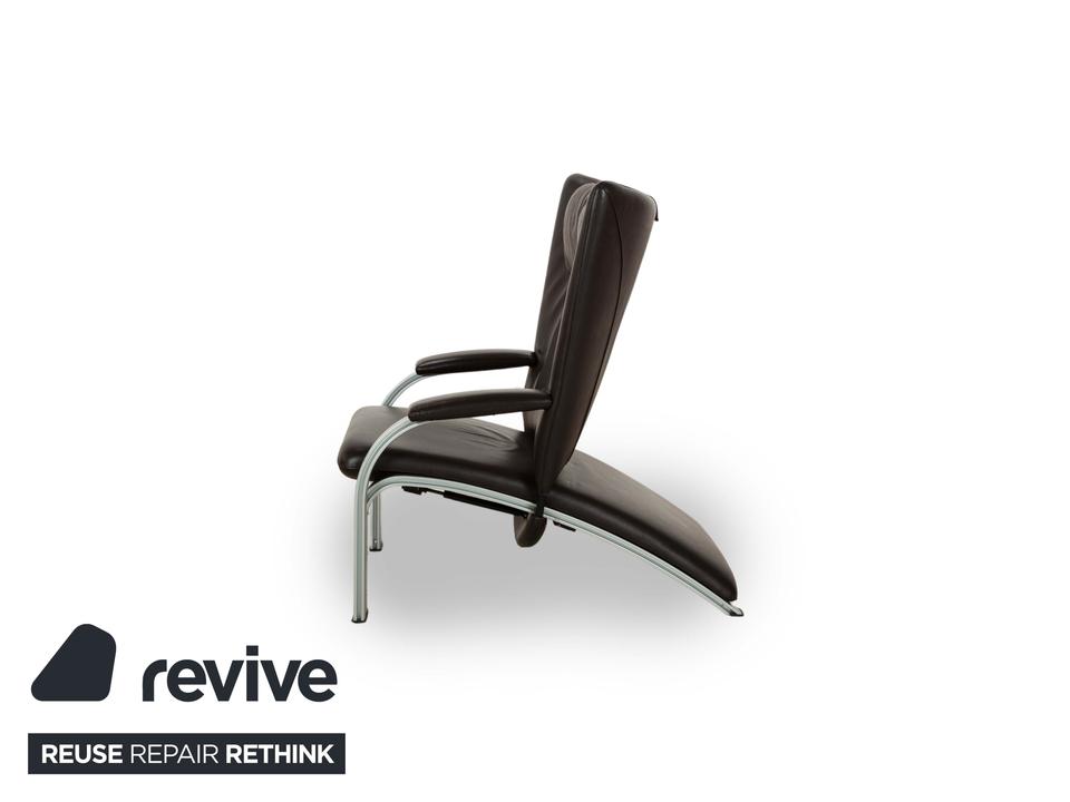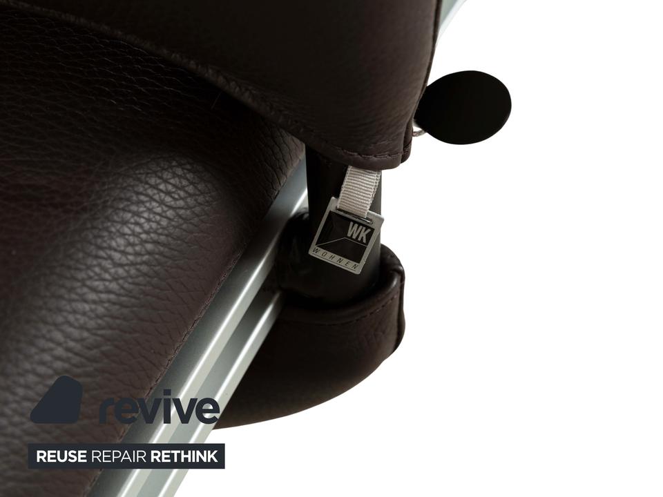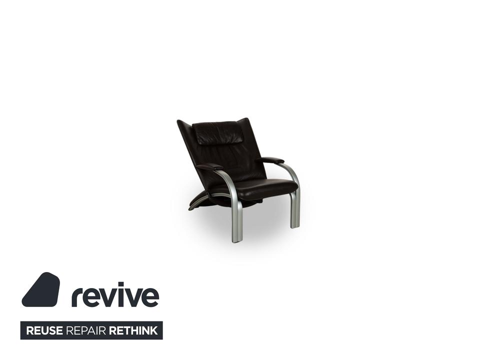 Dieser markante Sessel vereint modernes Design mit optimalem Sitzkomfort. Der Bezug aus dunkelbraunem Leder verleiht ihm eine luxuriöse Ausstrahlung, während die gepolsterte Rückenlehne mit integrierter Kopfstütze eine ergonomische Sitzhaltung unterstützt. Die geschwungenen Armlehnen und das stabile Gestell aus gebürstetem Metall sorgen für einen stilvollen Kontrast und hohe Langlebigkeit. Perfekt für Wohnbereiche, Büros oder Lounges, bietet dieser Sessel eine ideale Kombination aus Eleganz und Funktionalität.