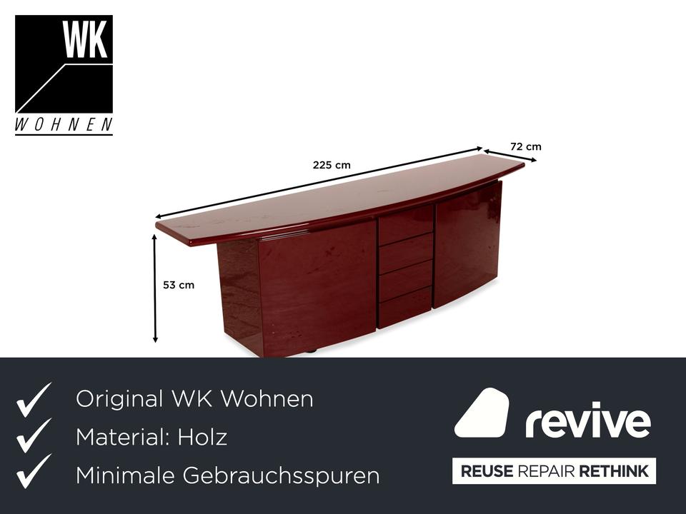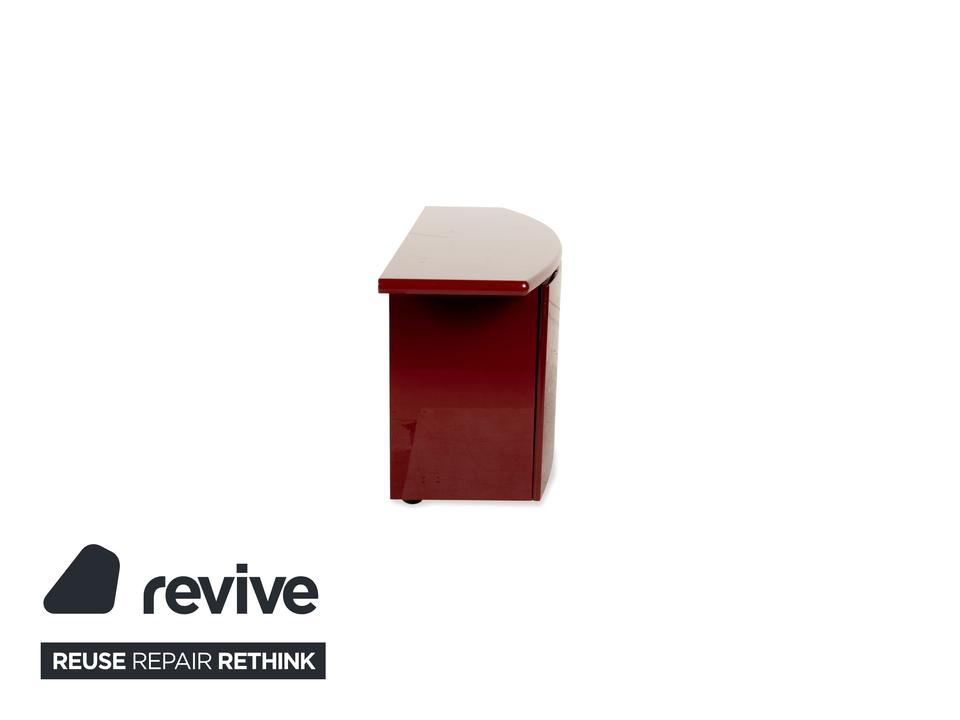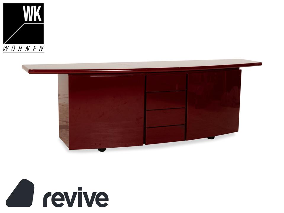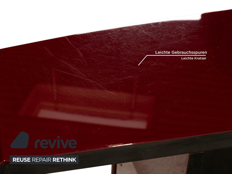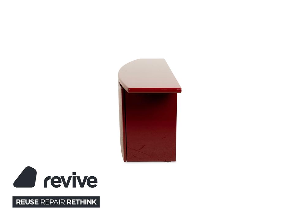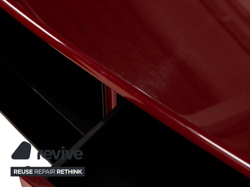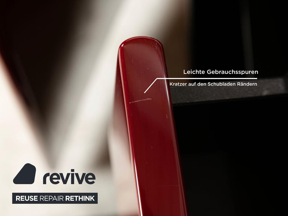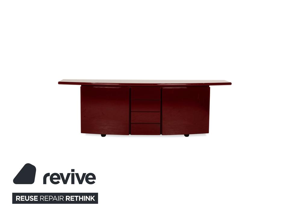 Dieses stilvolle rote Sideboard bietet einen echten Hingucker in Wohnzimmer oder Flur. Durch die verschiedenen Schublaben und Regalfächer sorgt das Sideboard für viel Stauraum – und ist somit nicht nur ein stilvolles Designelement sondern auch funktional.