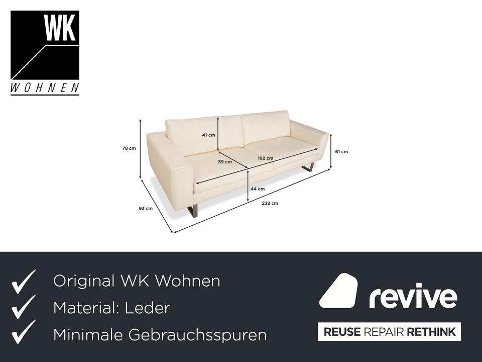 Das WK Wohnen WK 620 Viersitzer Sofa legt einen eleganten cremeweißen Farbton, gepaart mit silbernen Fußteilen an den Tag. Dieses schafft eine zeitlose Optik und lässt eine einfache Kombination mit anderen Möbel zu. Das hochwertige Leder sorgt nicht nur für Langlebigkeit sondern auch für maximalen Komfort.