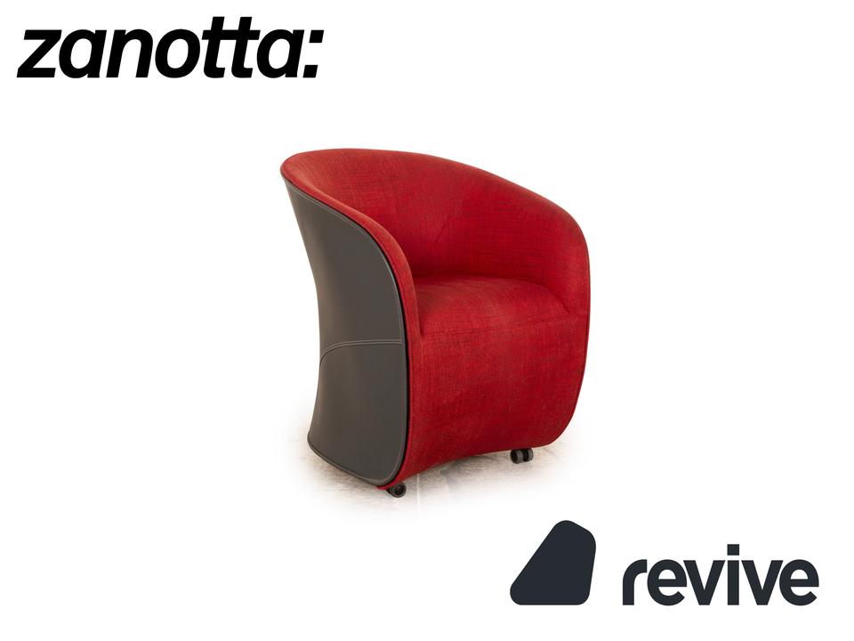 Zanotta Calla Stoff Sessel Rot mit Leder Korpus in Braun auf